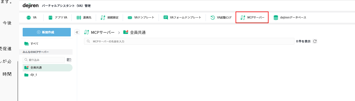 dejiren AI lite (旧称:スタンダードプラン)をご利用のお客様には、MCPサーバーの設定画面は表示されません。