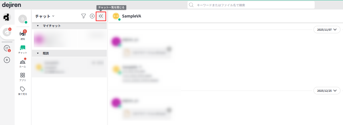 | 機能追加 | ルーム・チャット・アプリ一覧を折りたたんで、メッセージの表示領域を拡大できるようにしました | 〇 | 〇 | |
