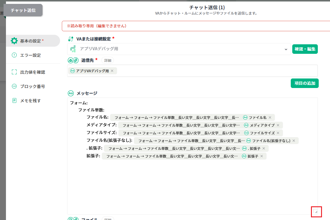 読み取り専用に設定されたブロックでも、メッセージ部分の拡大操作が可能になり、視認性が向上しました。