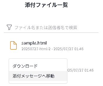 添付ファイル一覧から、そのファイルを添付したメッセージへ移動できるようになりました