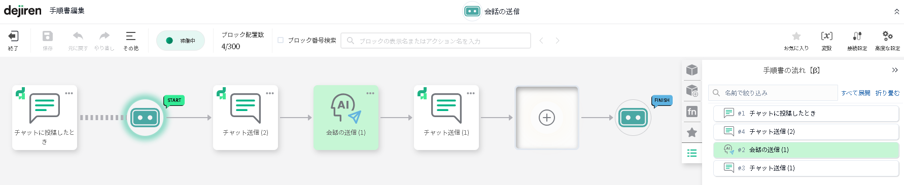 ブロックのパレットの一番下に「手順書の流れ」タブを追加しました。