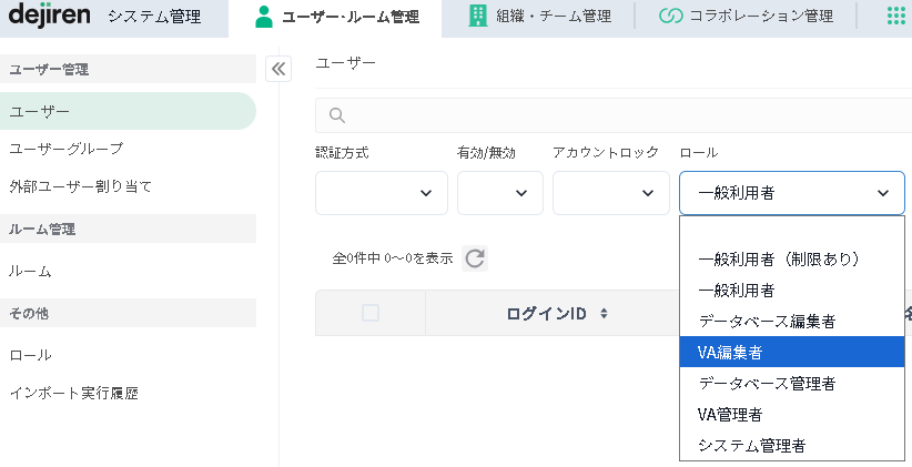 ユーザー一覧の絞り込み条件にロールを追加しました。
