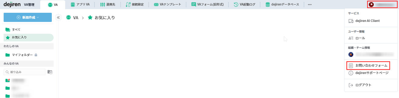 dejiren には、すべての方が利用される dejiren AI Client(バーチャルアシスタント (VA) の操作画面)、