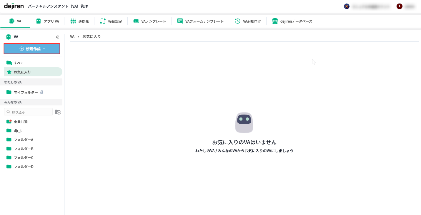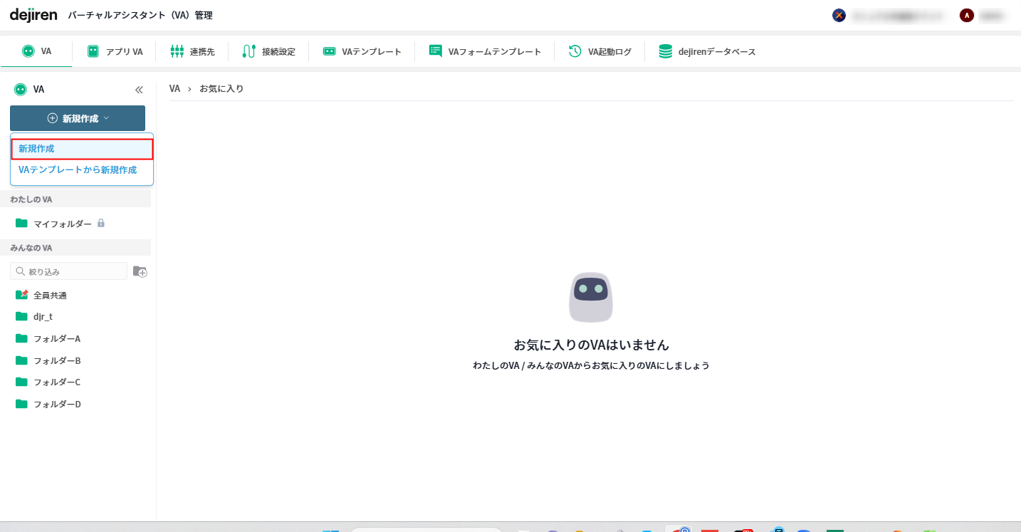 2. 表示されるサブメニューで「dejiren VA管理」をクリックします。