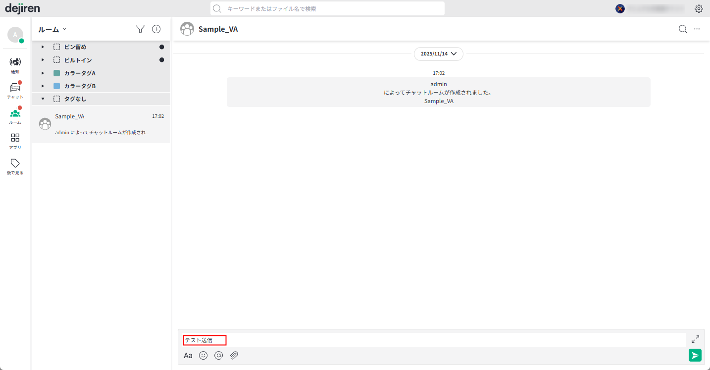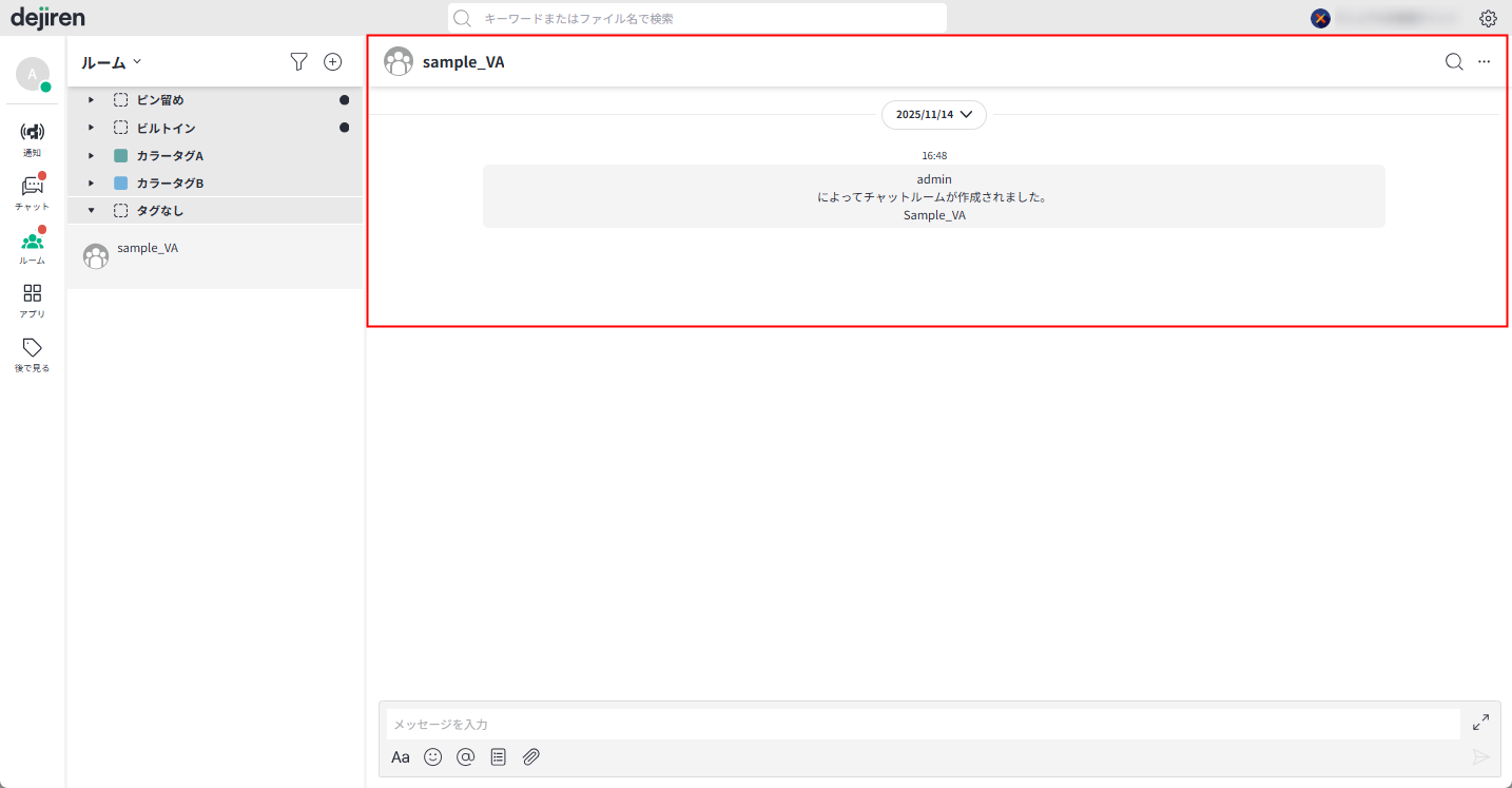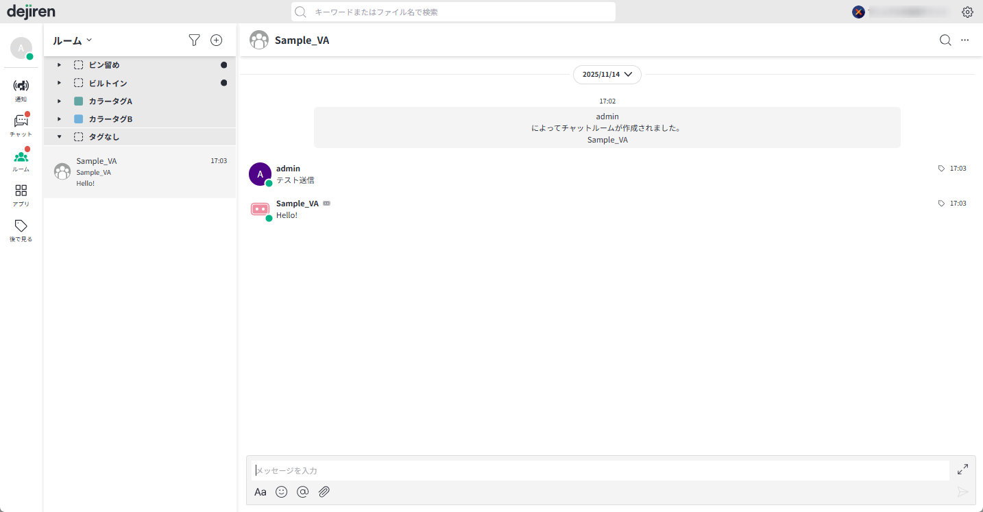 再びルーム画面に移動して、先ほどVAを作成したルームを表示します。