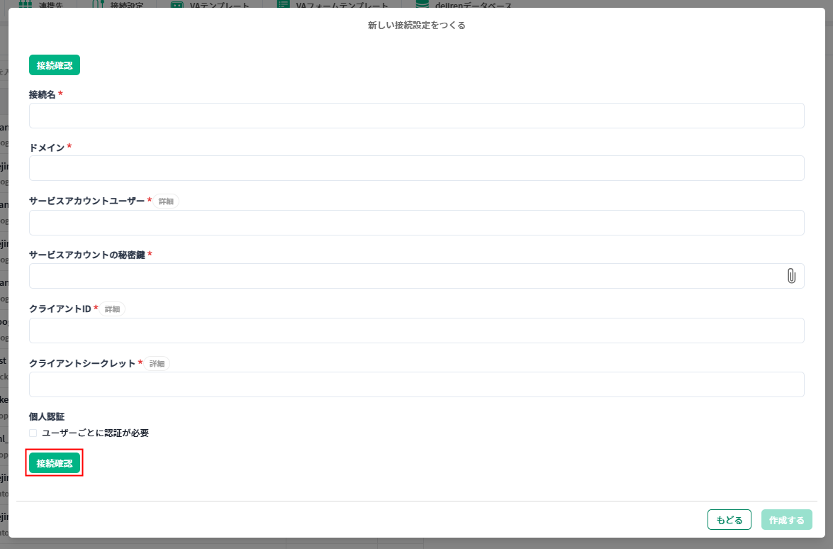6. すべての項目の入力が完了したら、[接続確認]をクリックします。