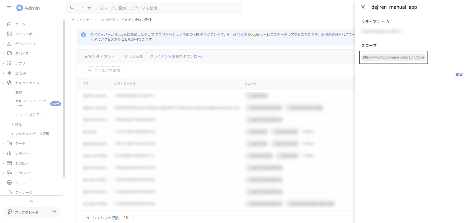 4. [クライアントID]に手順5-10.で作成したサービスアカウントの[一意のID]を入力します。