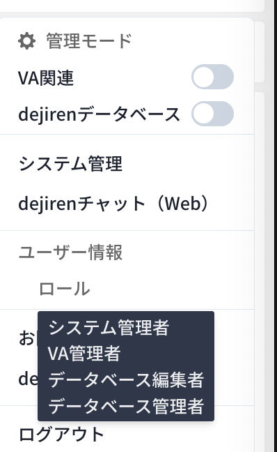 VA管理画面でdejirenデータベースの管理モードに切り替えて、