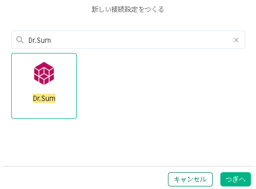 4. 「新しい接続設定をつくる」ダイアログで、Dr.Sum をクリックで選択して「つぎへ」をクリックします。
