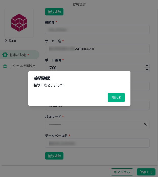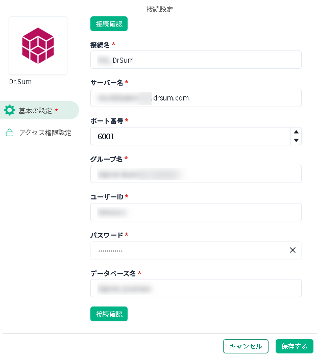 データベース名 | 接続対象の Dr.Sum のデータベース名を、表記通りに文字入力 | 必須 |