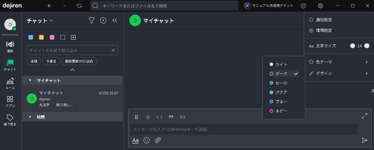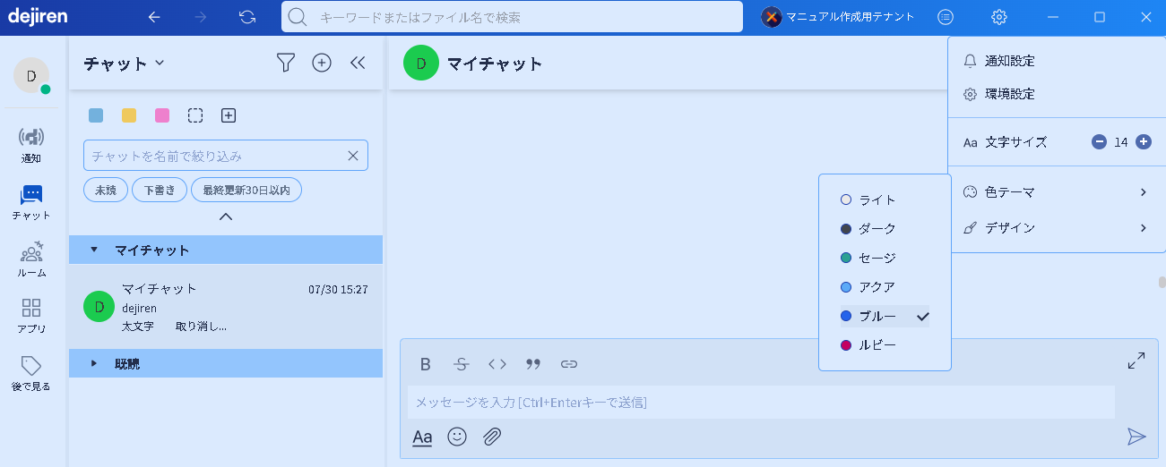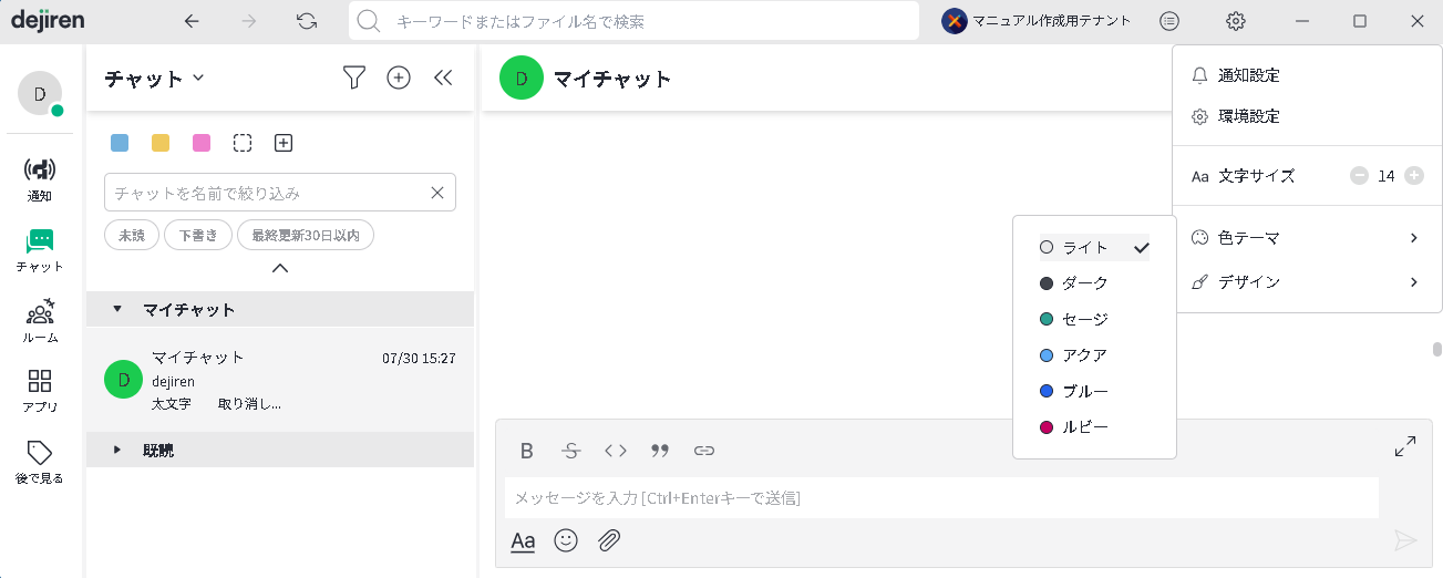 | チャットを名前で絞り込み | 任意の文字列に該当するチャットメッセージのみ表示します。 |