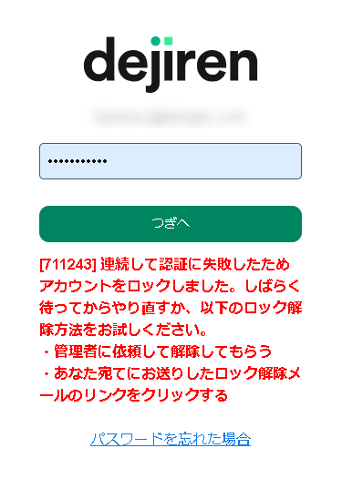 dejiren のログインアカウントやパスワードの入力を5回以上連続で失敗したユーザーは、30分以上dejiren にログインできない状態となります。