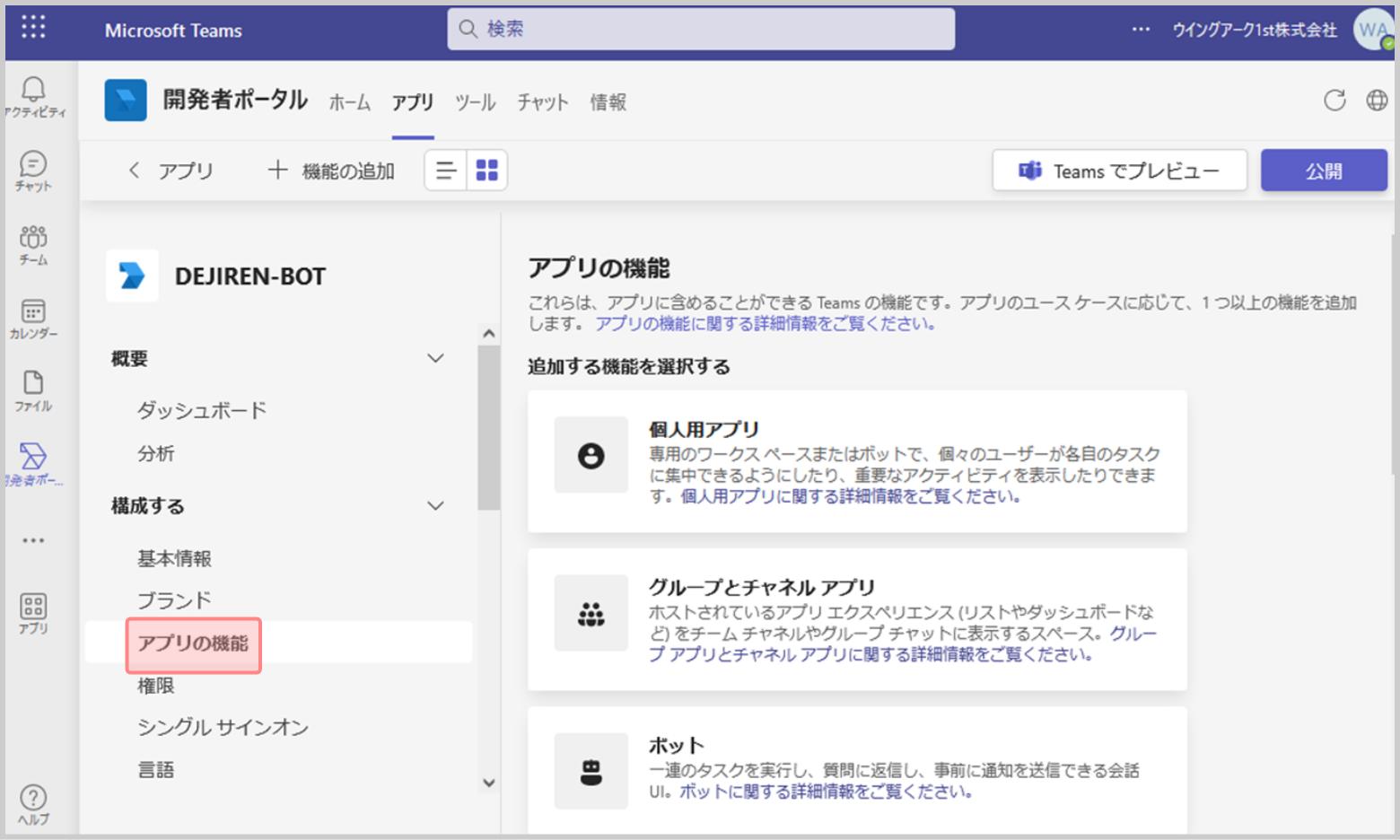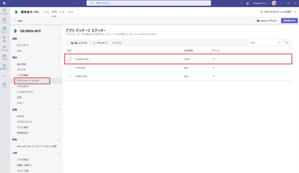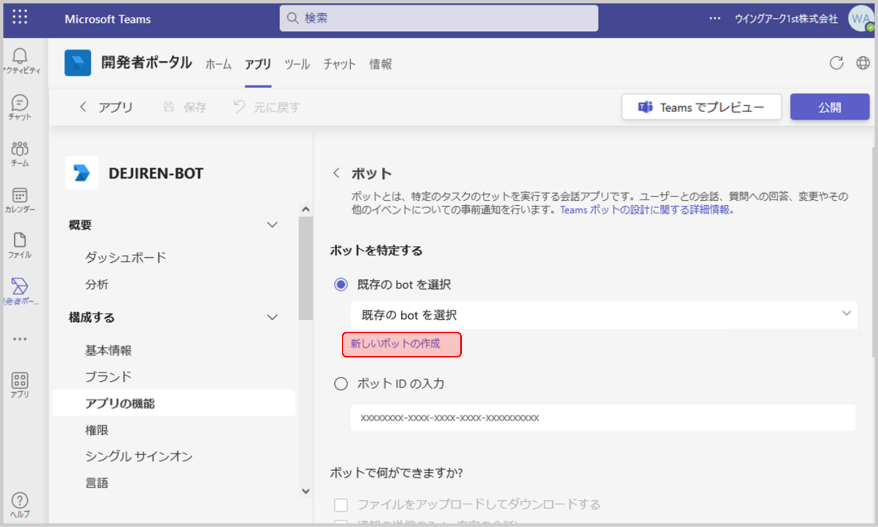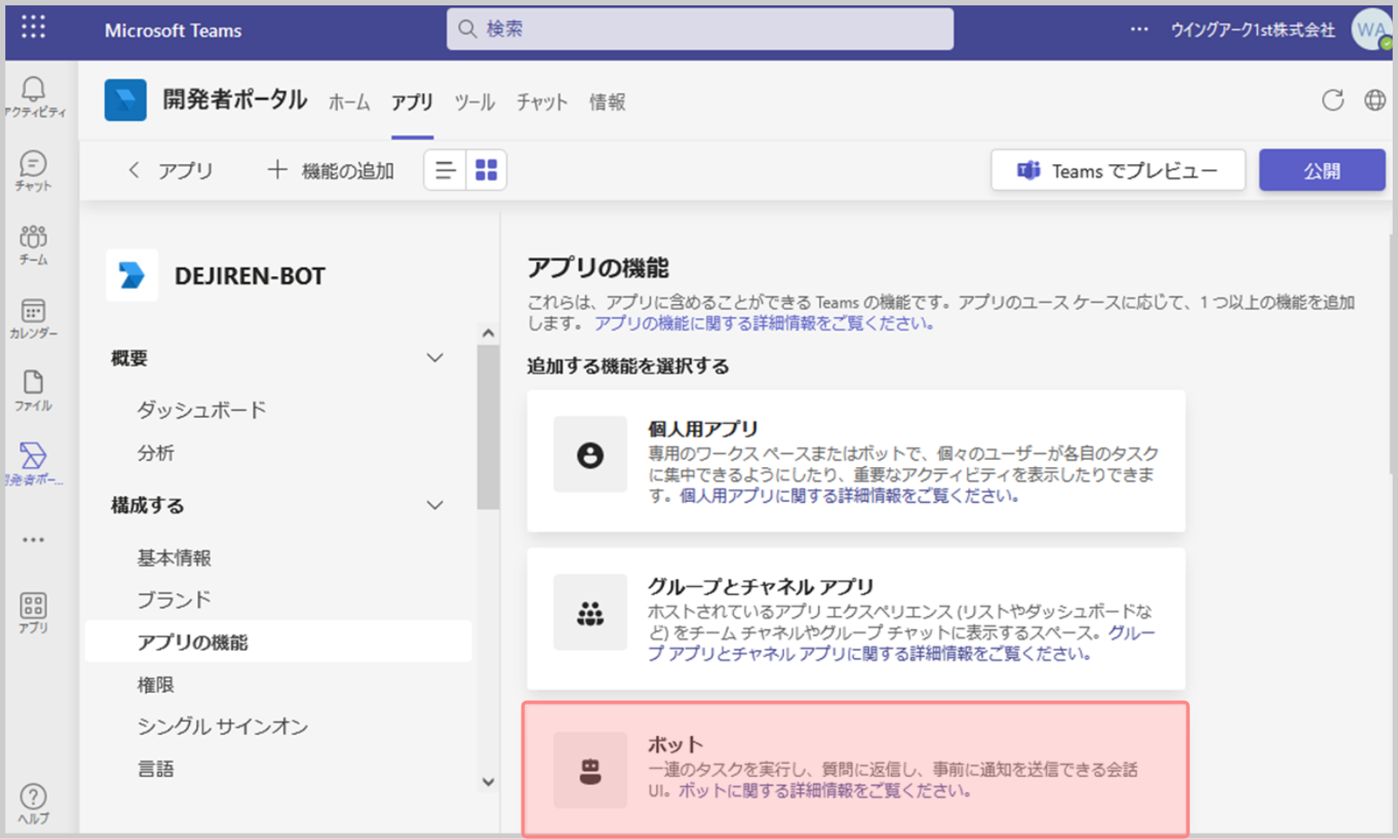 手順2. Teams開発者ポータルでBotアプリを作成する