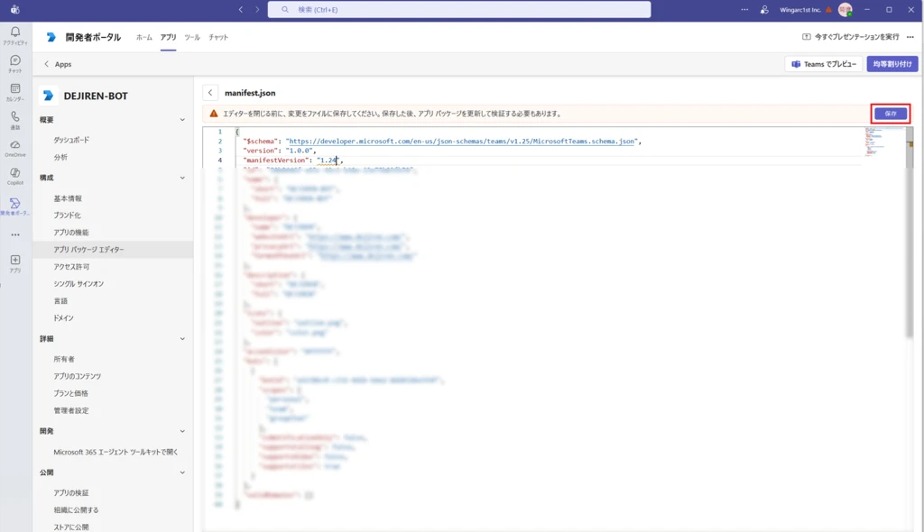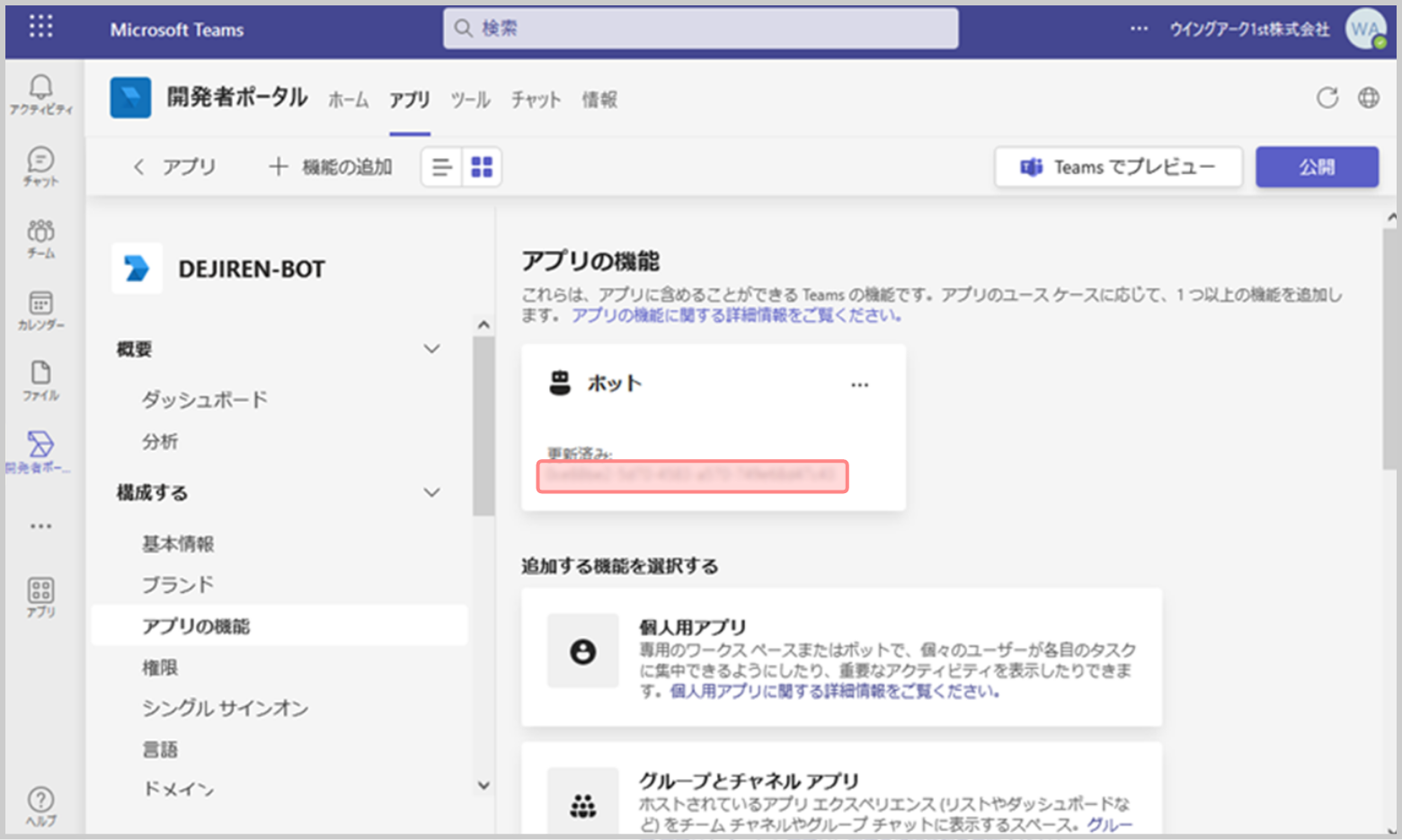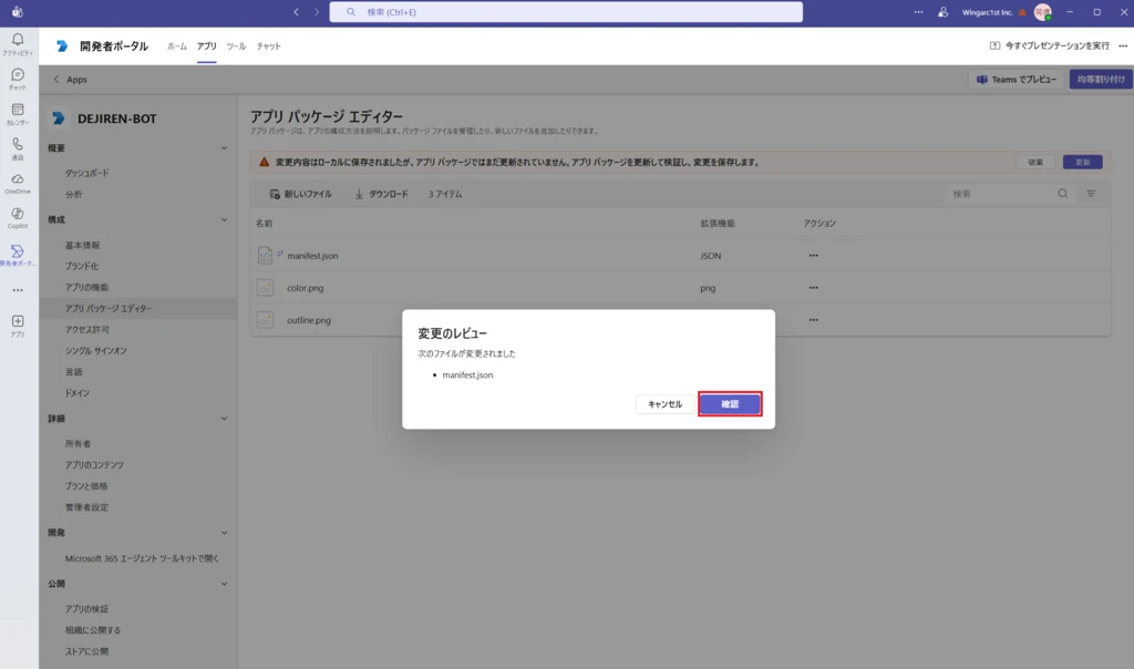 手順7.Microsoft Teams / 開発者ポータルで、作成したBotを「追加」し、