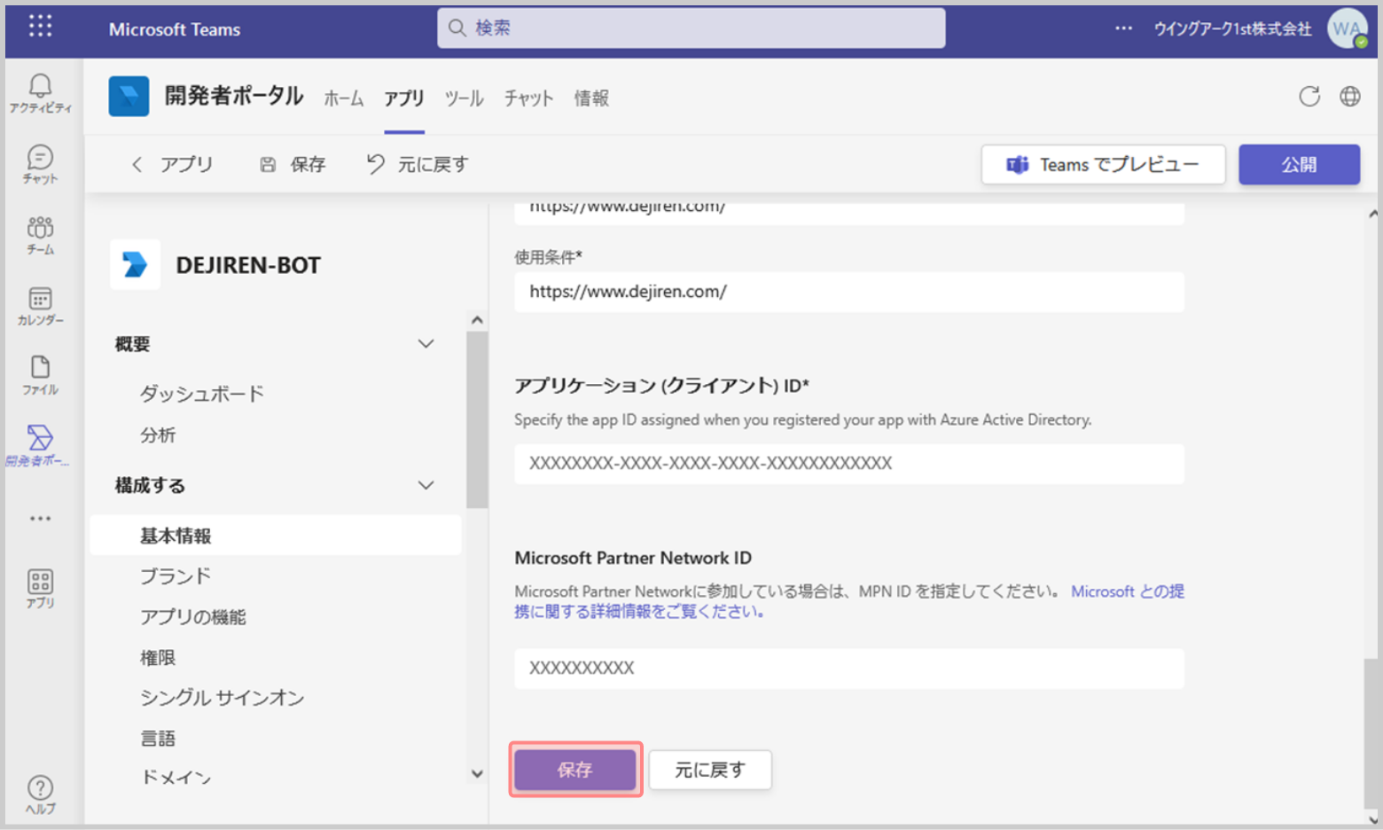 以上で Microsoft Teams と dejiren の接続設定は完了です。