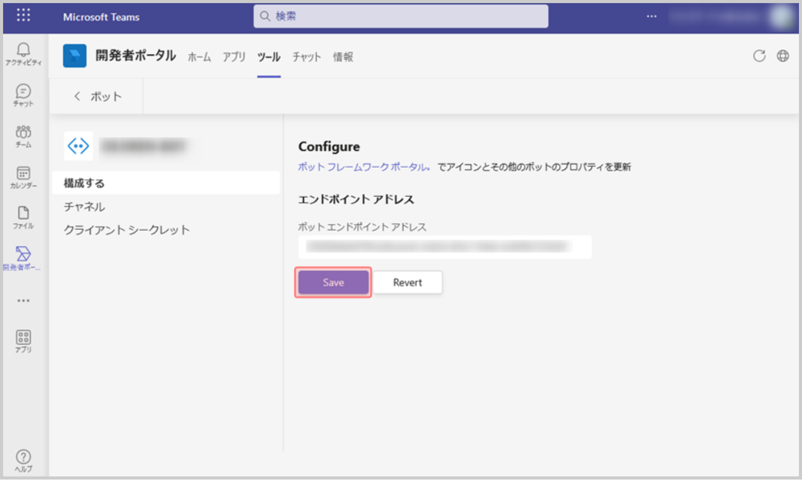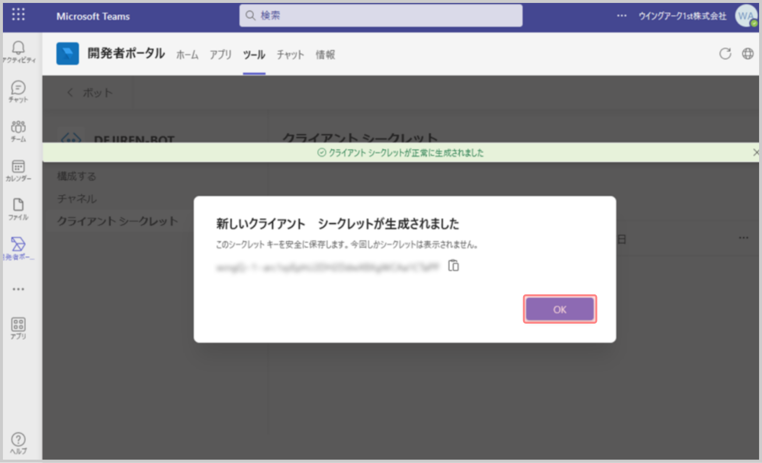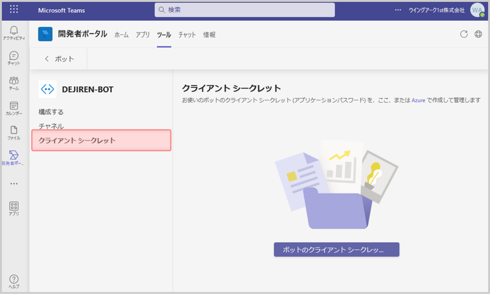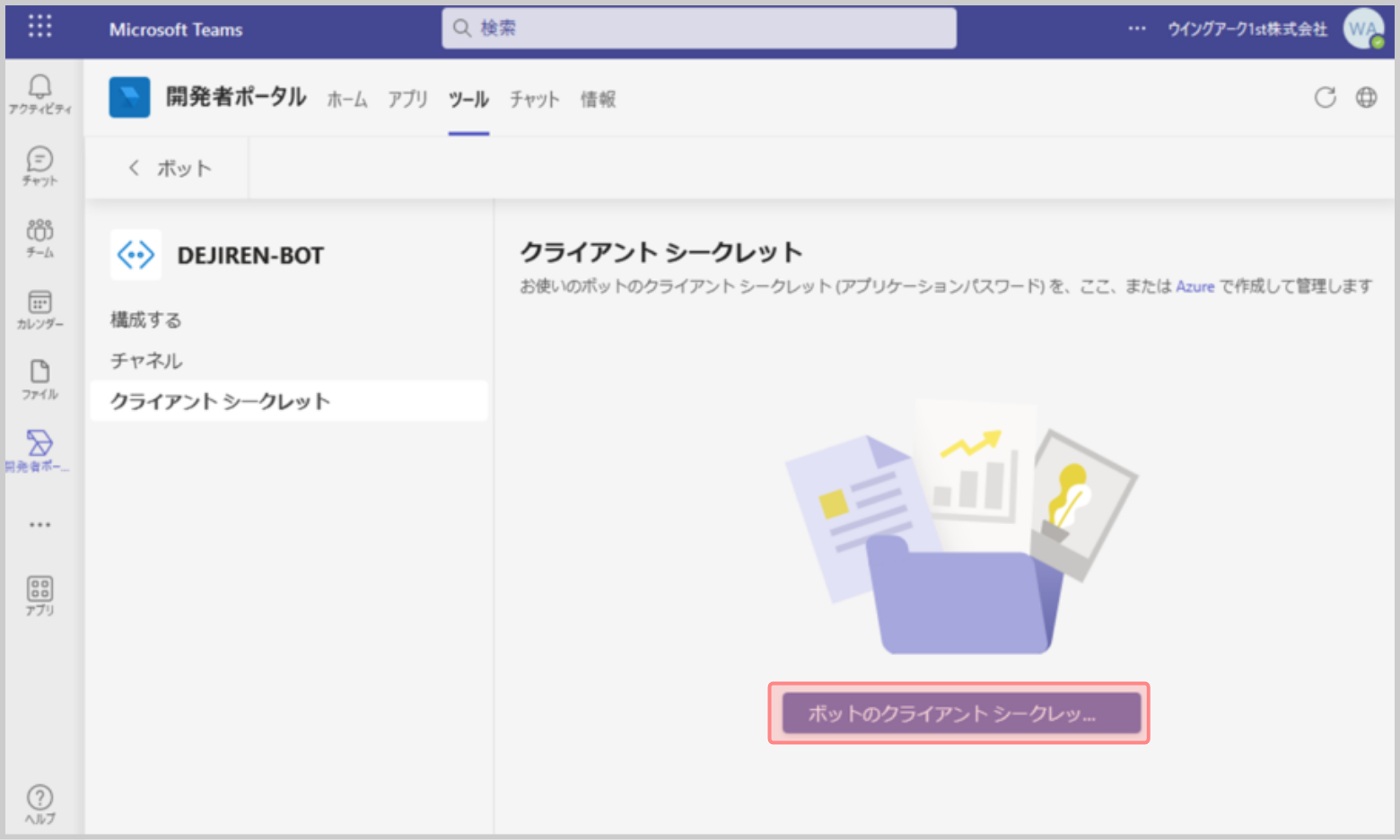 13.[ボットのクライアント シークレッ…]をクリックします。