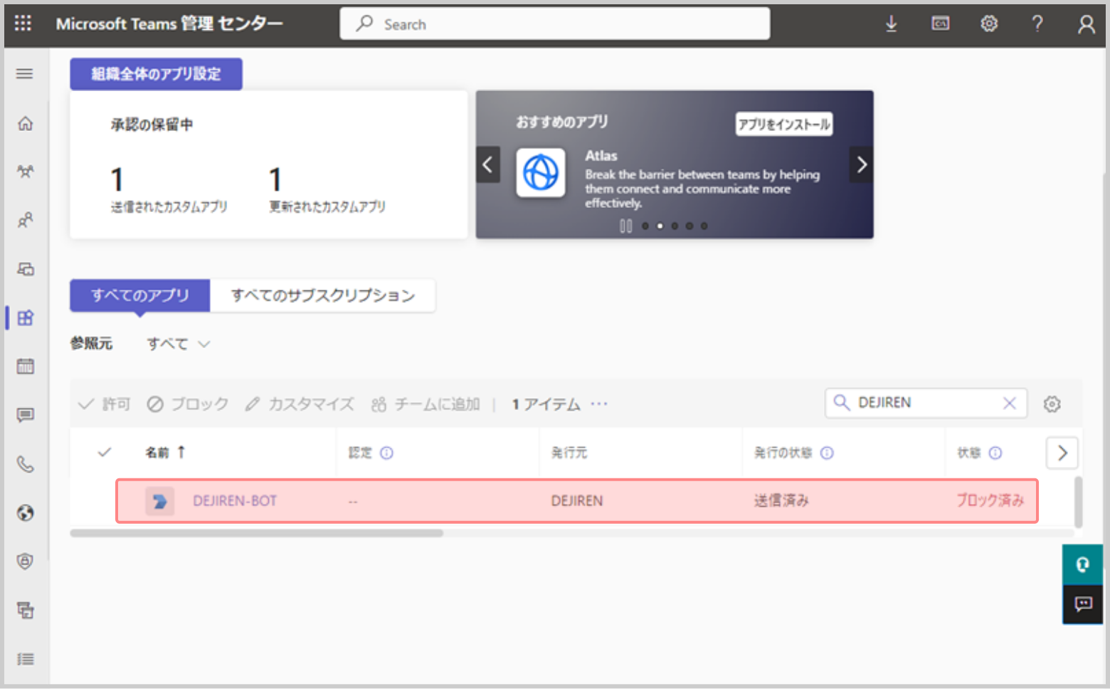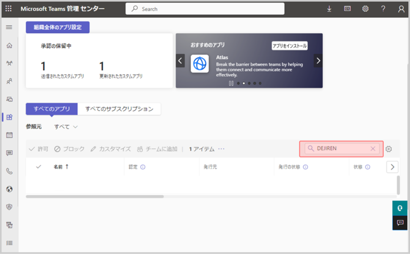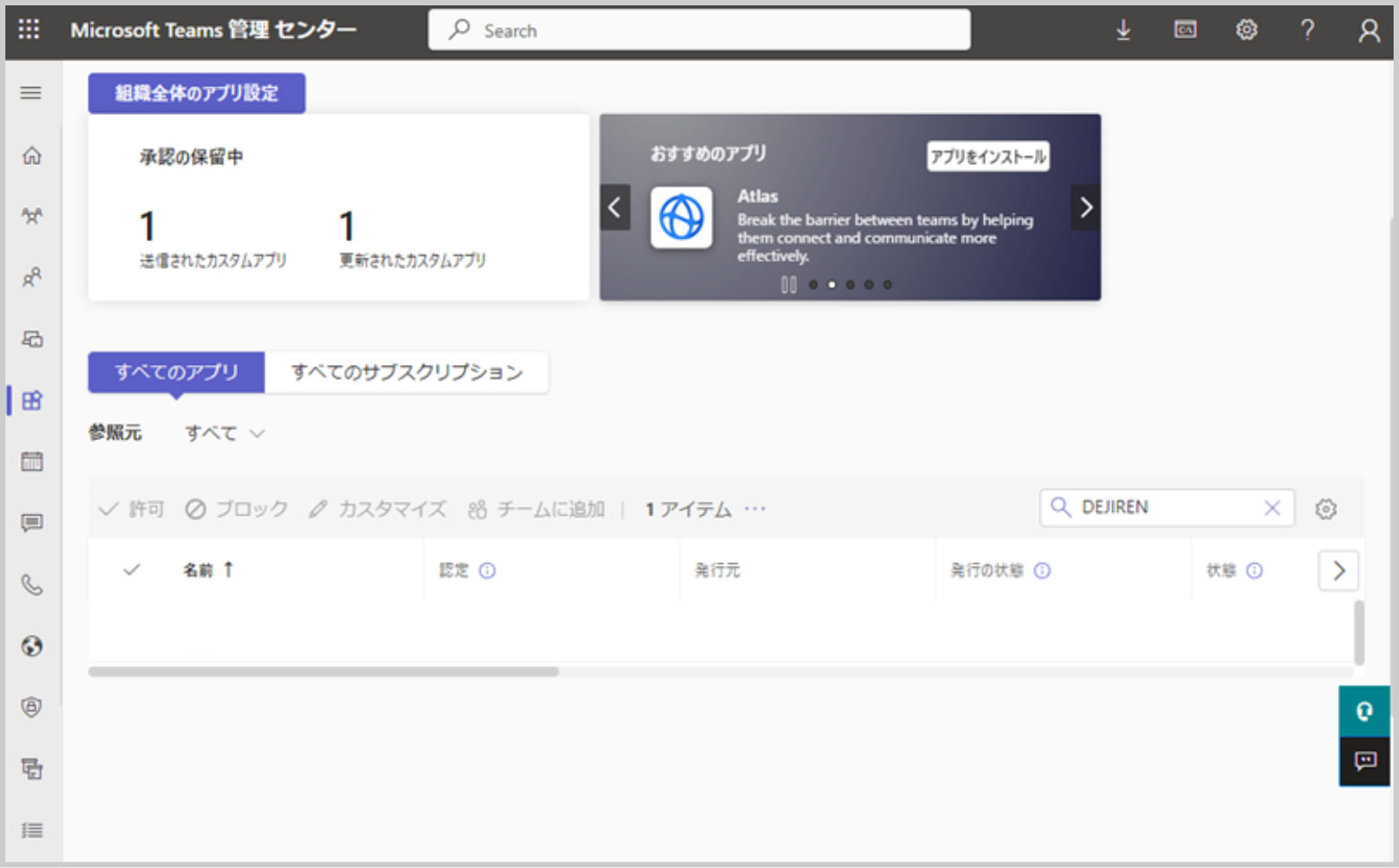 3.Microsoft Teams 管理 センターのアプリを管理に移動します。https://admin.teams.microsoft.com/policies/manage-apps