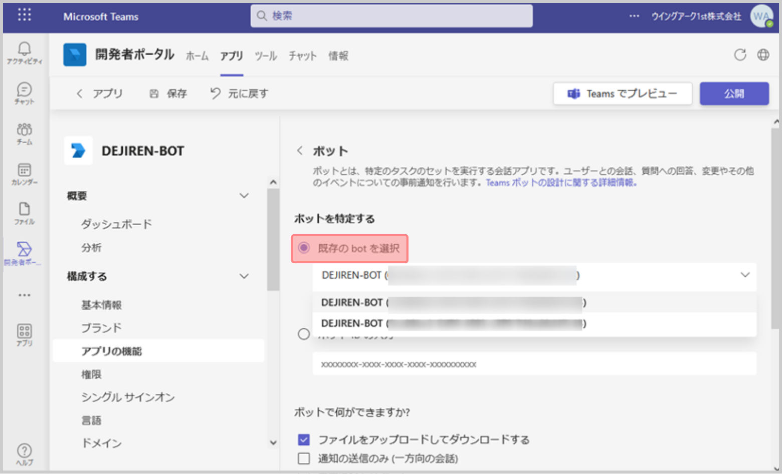 | Web サイト | 作成したBotアプリの公開承認 | |
