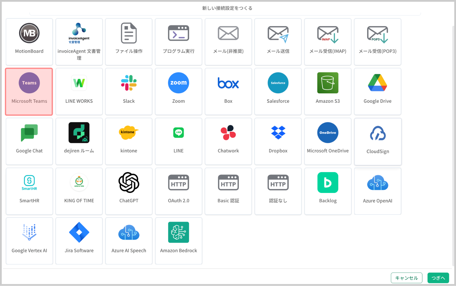 [Microsoft Teams]を選択して、[つぎへ]をクリックします。
