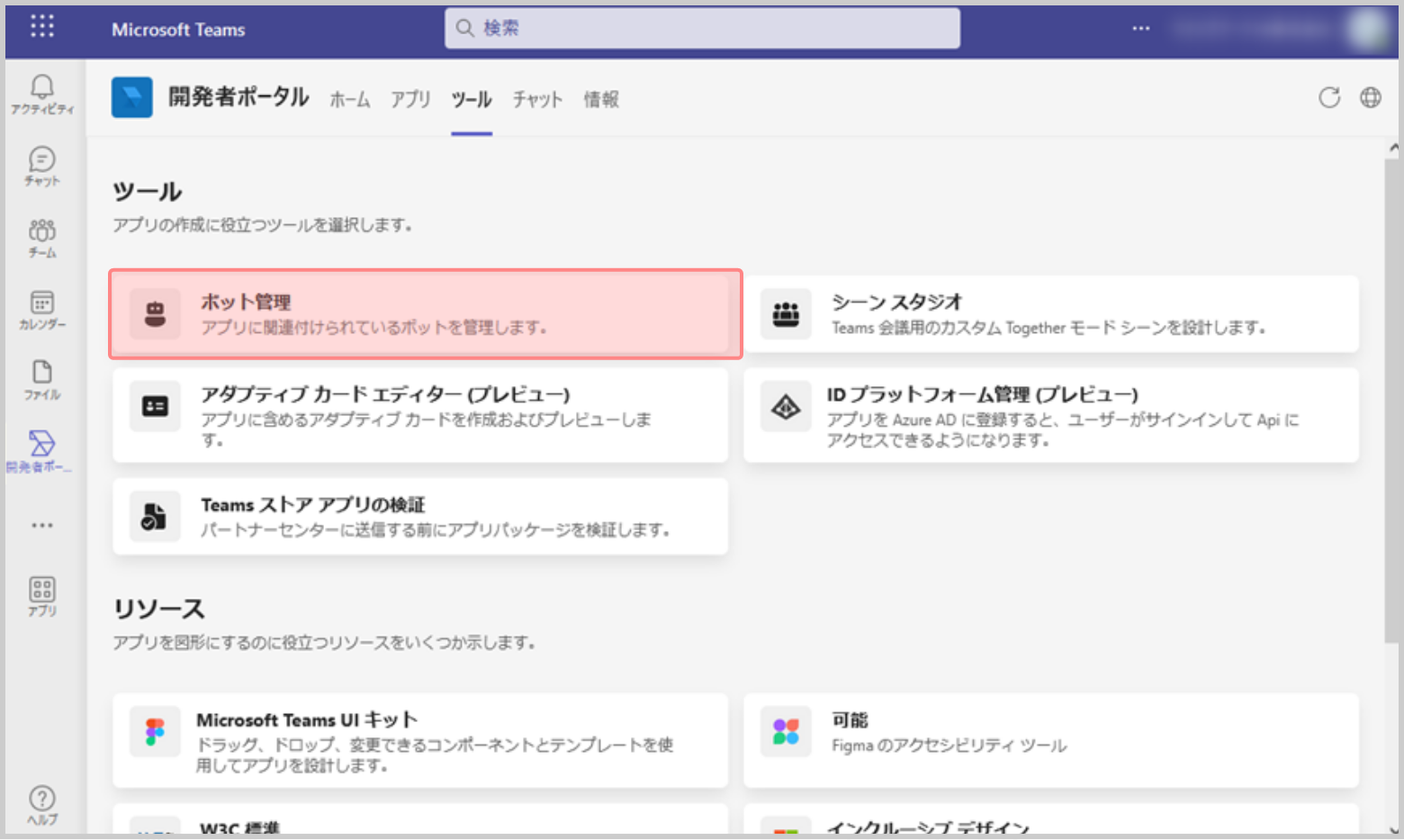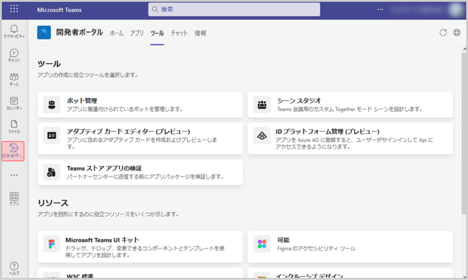 手順1. Microsoft Teams に開発者ポータルを追加する
