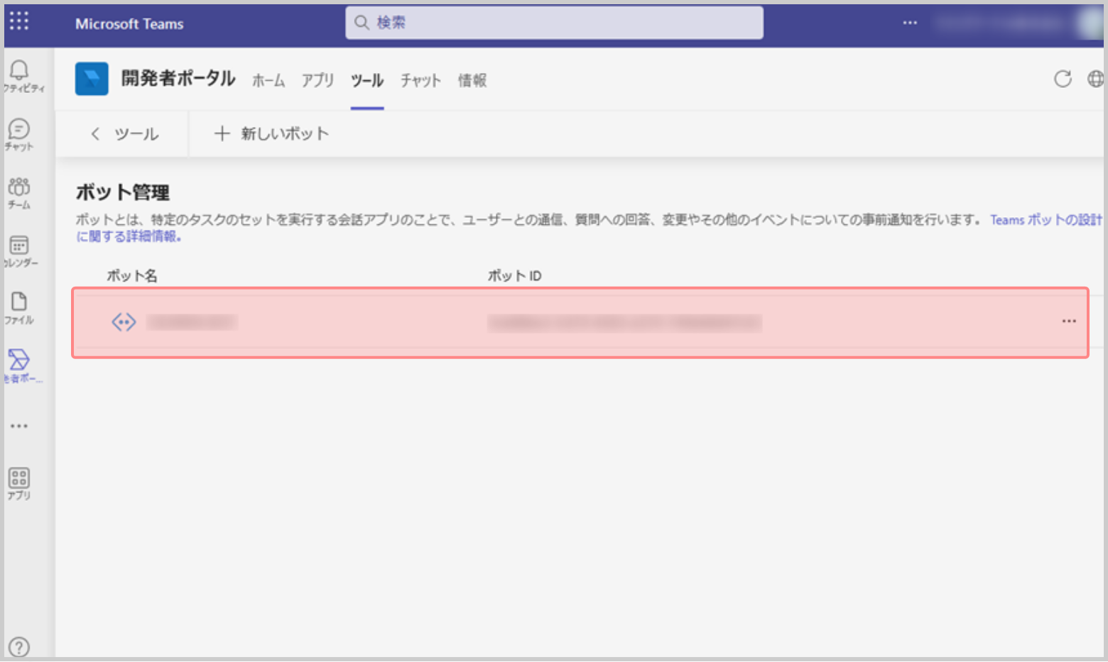 | Microsoft Teams | 開発者ポータル操作権限 | Botアプリの作成 |