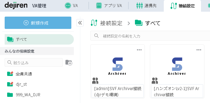 - SVF Archiverとの接続設定が未作成の場合には、こちらを参照して作成しておいてください。