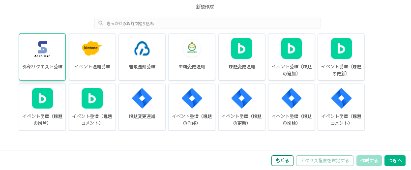 2. 使用する接続設定は、「dejiren 接続設定」の手順で Webhook を発行した接続を選択して「作成する」をクリックします。