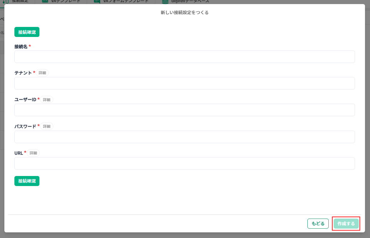 6.画面右下の[作成する] をクリックして、接続設定を終了します。