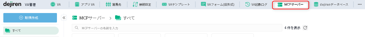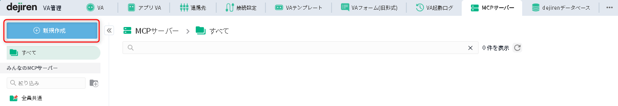 3. 「MCPサーバー」画面で、「新規作成」をクリックします。