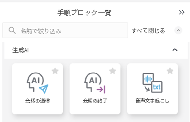 「手順ブロック一覧」の「生成AI」グループにある共通ブロックを配置します。
