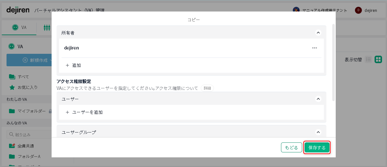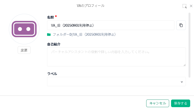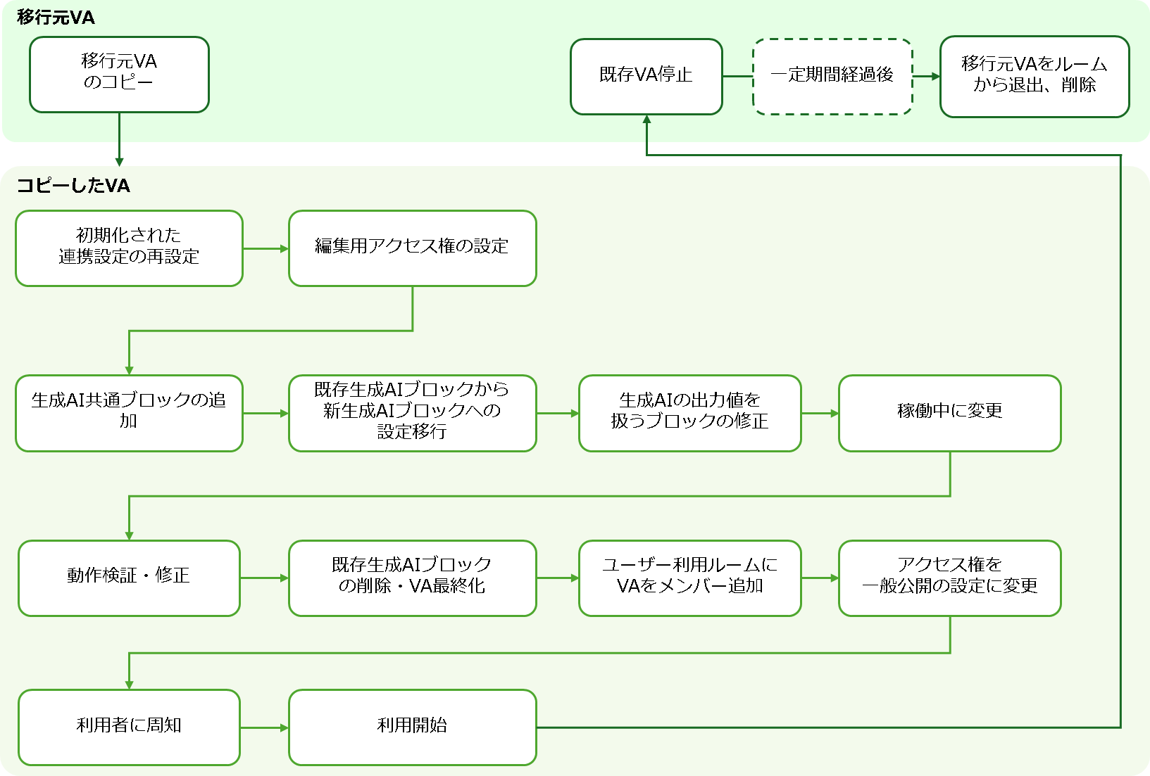 - 新 VAのアクセス権限や各種接続設定、利用範囲(VA の利用を許可するユーザー・参加するルーム)は正式運用開始前に再度ご確認ください。