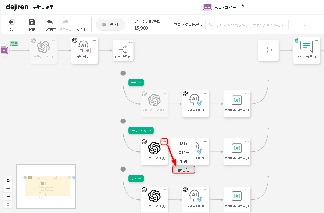 既存で配置されている個別生成AI専用のブロックを無効化します。