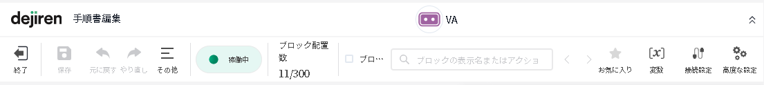 8. VA手順書を保存して、動作状態を「停止中」から「稼働中」に変更します。