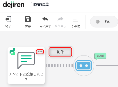 - 手順書編集画面に配置したブロックを削除したいときは、