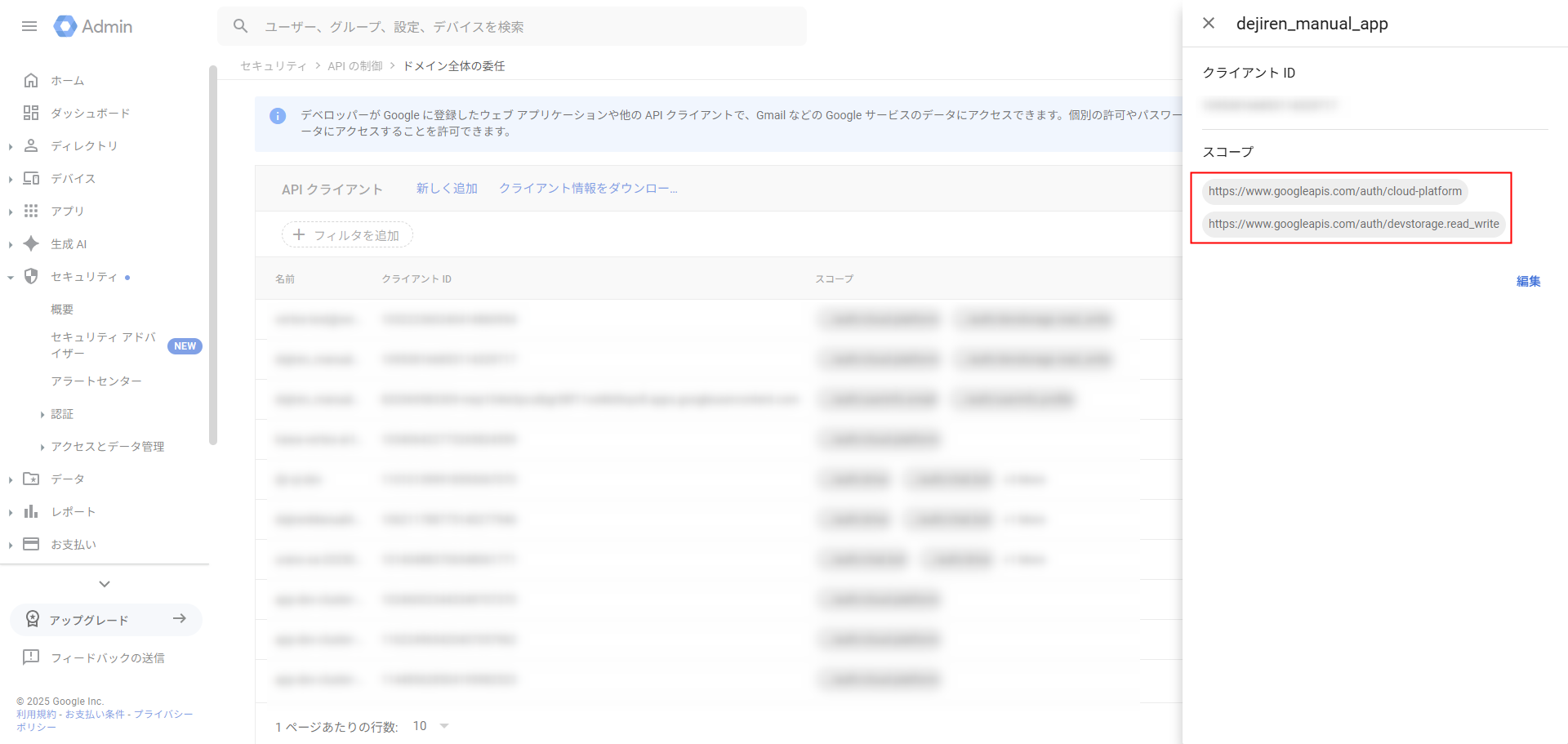 Google Workspace 管理コンソール | 特権管理者 | サービスアカウント・OAuthクライアントのアクセス権設定 プライマリドメインの確認 |
