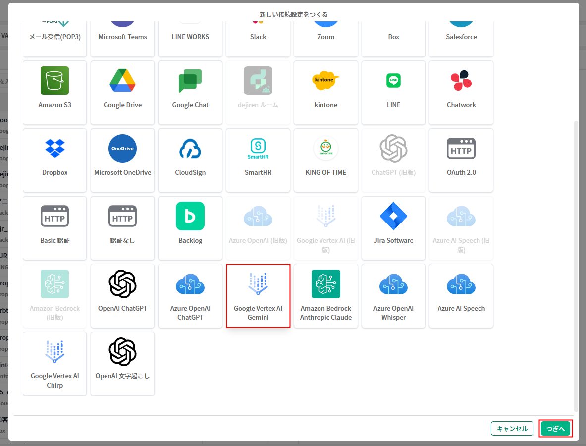 4. [Google Virtex AI Gemini] を選択し [次へ] をクリックします。